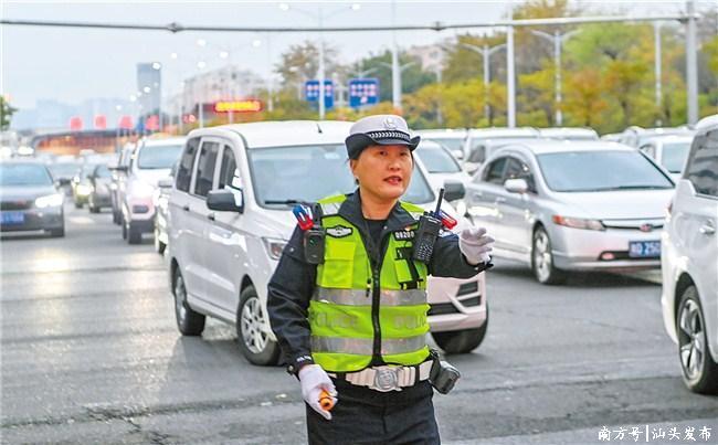 展现汕头交警执勤工作的“半边天”